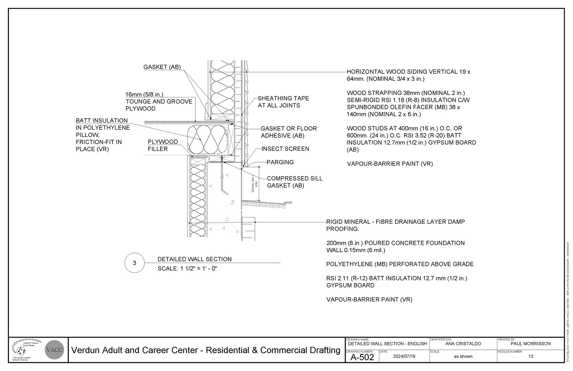 This page is dedicated to introduce the worked I produced during the Residential and Commercial drafting program at Verdun Adult Career Centre of Lester B. Pearson Board ( VACC).